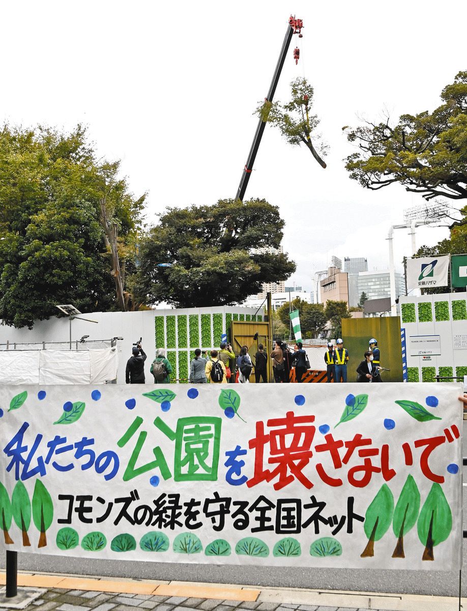 当初の伐採予定だった昨秋の段階では、文化人から批判的な意見が目立つなど反対運動は盛り上がっていたが、小池百合子知事の要請で事業がストップしている間に沈静化した。反対する住民の1人は「緑を犠牲にして開発する構図は変わっていないのに、1年の間が空いたことで、反対の空気はしぼんだ」と悔しがった。(森本智之)