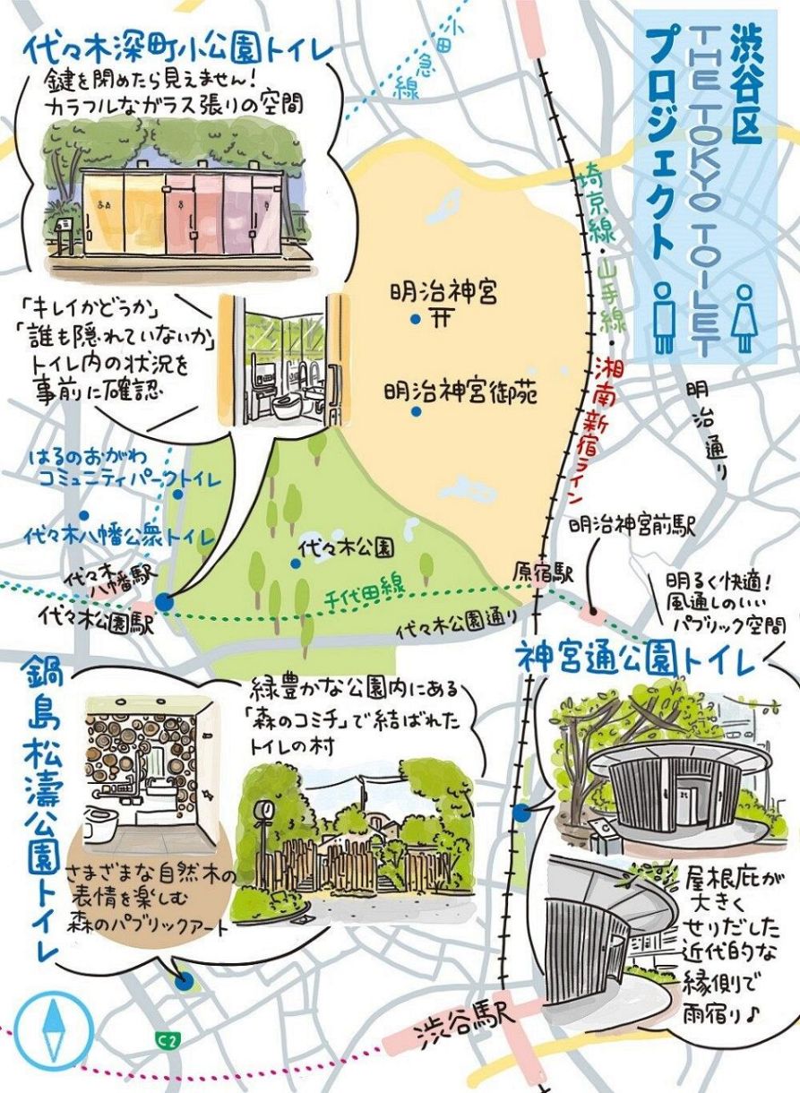 一部のトイレはヴィム・ヴェンダース監督作品『PERFECT DAYS』に登場し、都内のトイレ清掃員が日々の仕事をこなす大切な場所として描かれています。