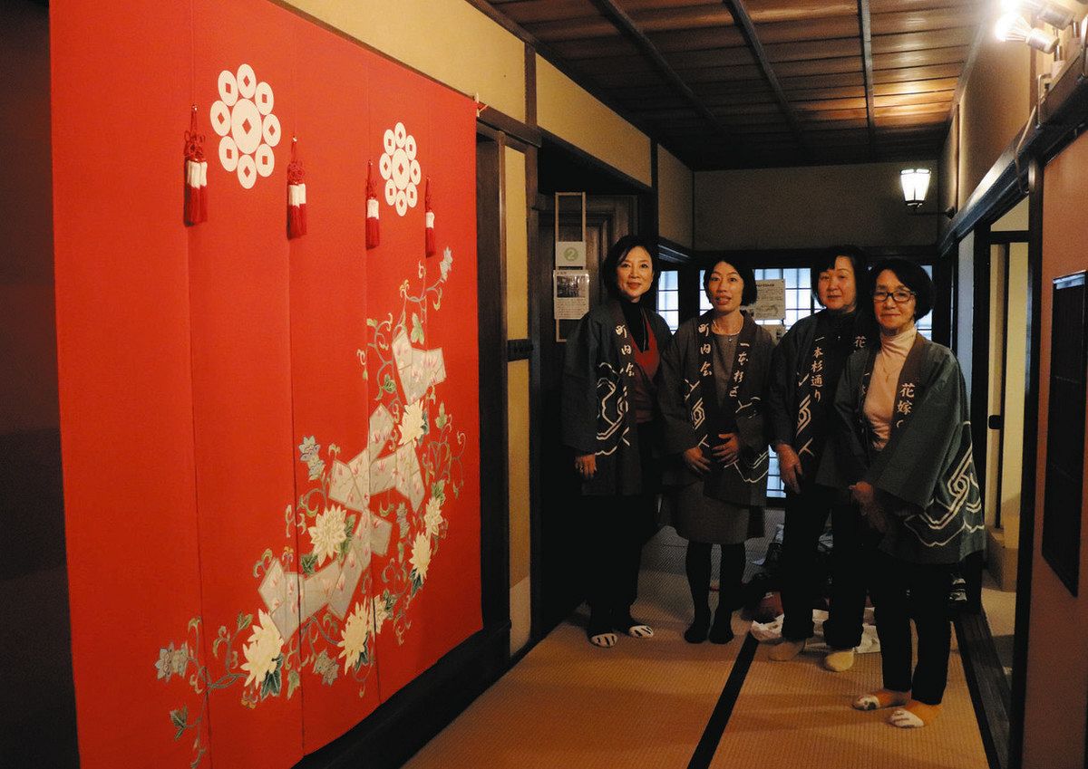 能登半島地震で被害を受けた石川県七尾市に古くから伝わる「花嫁のれん」を紹介する展示が2日、東京都文京区千駄木の「旧安田楠雄邸庭園」で始まる。かつて七尾市の人たちが邸宅修復の支援をしたことに対する恩返しの気持ちも込め、庭園を管理する「たてもの応援団」が企画した。10日まで。