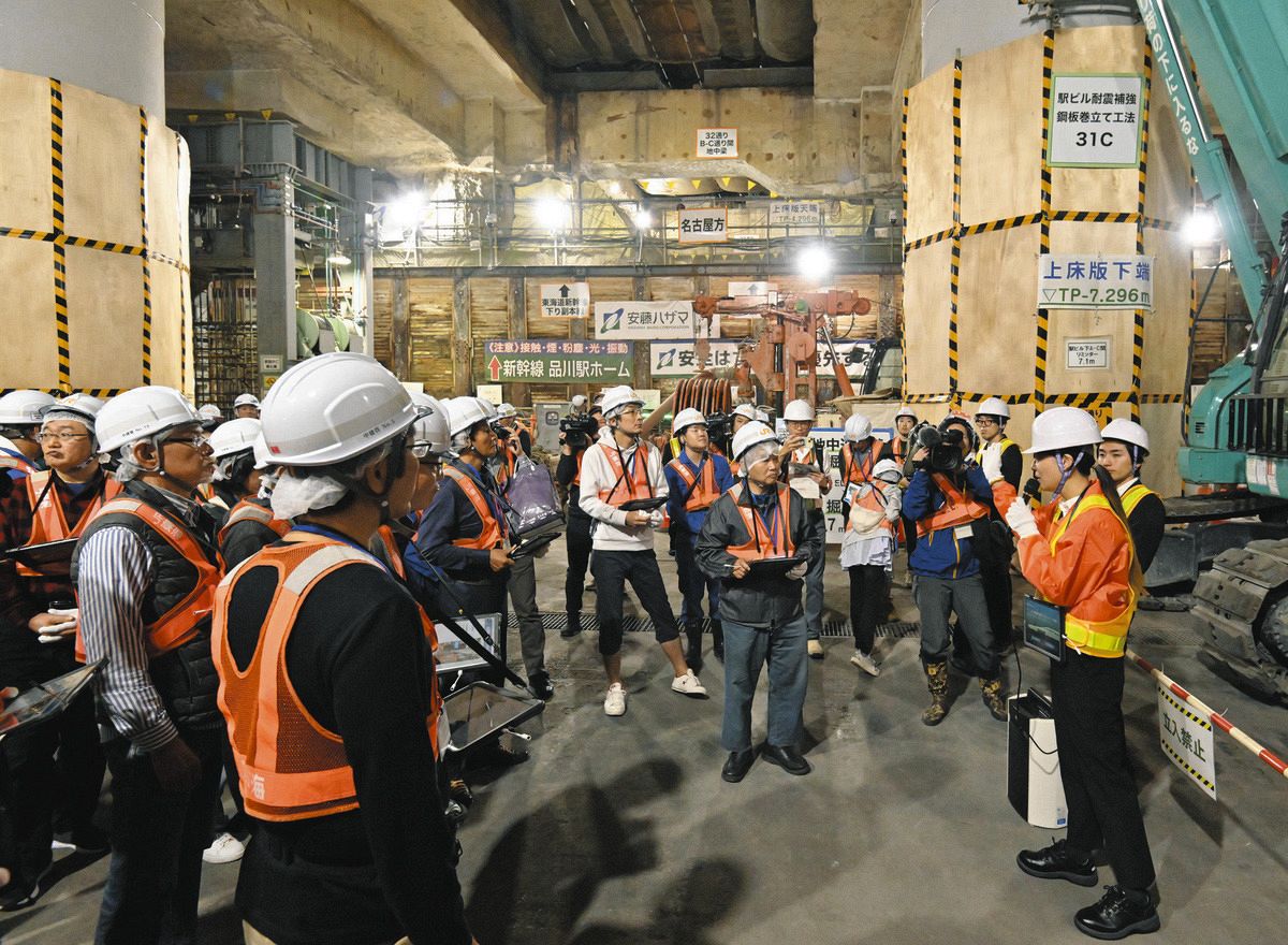 周辺住民らに向けて開催されたリニア中央新幹線品川駅の工事現場見学ツアー=4日、東京都港区で(中村千春撮影)