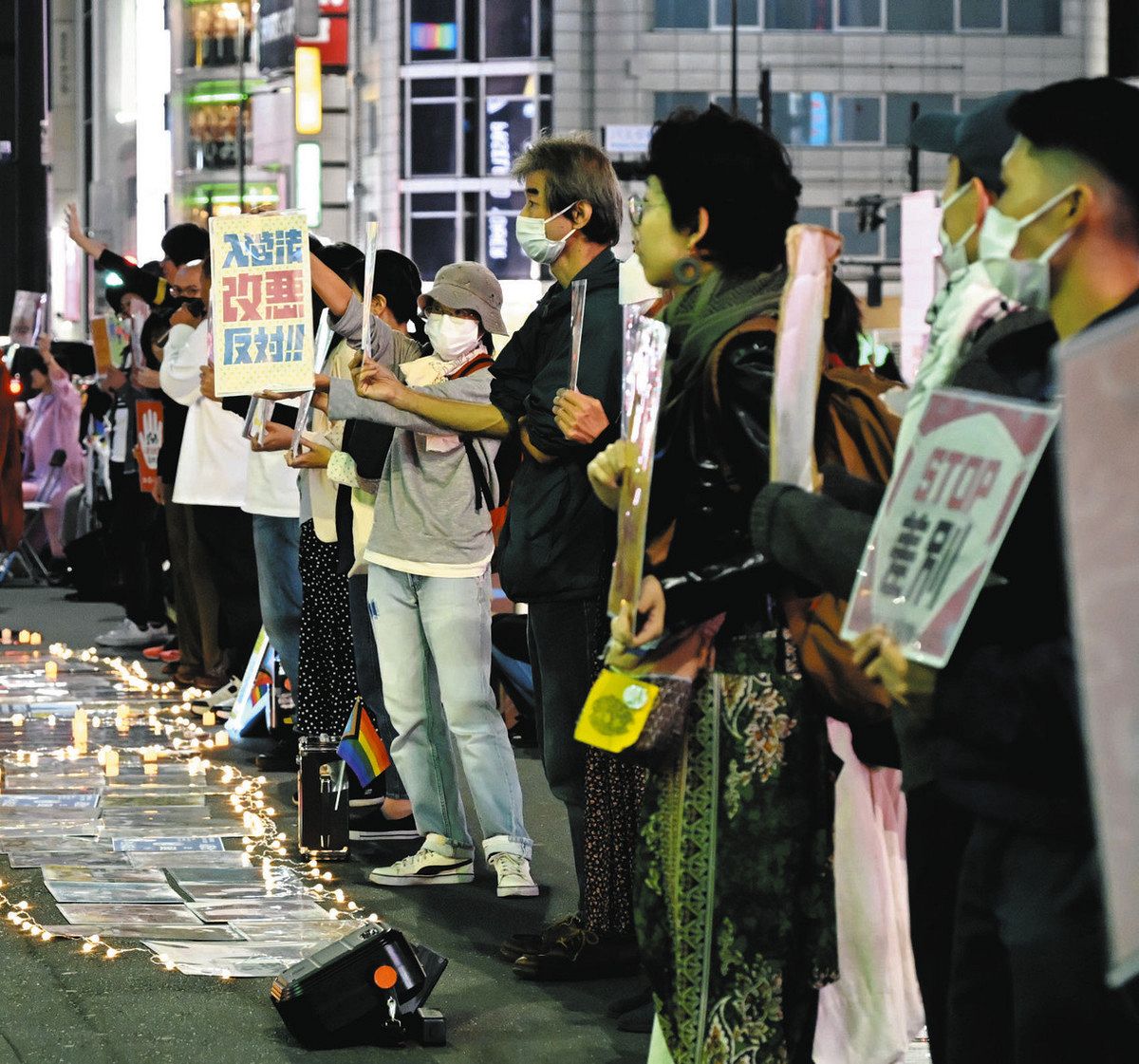 入管難民法に抗議する人たち=新宿駅で