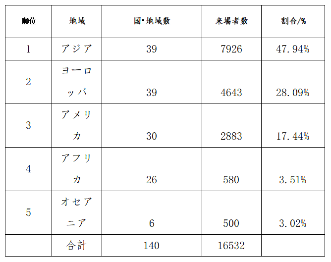 来場者は、中国本土、台湾、香港、マカオを含む 144の国と地域 から訪れました。