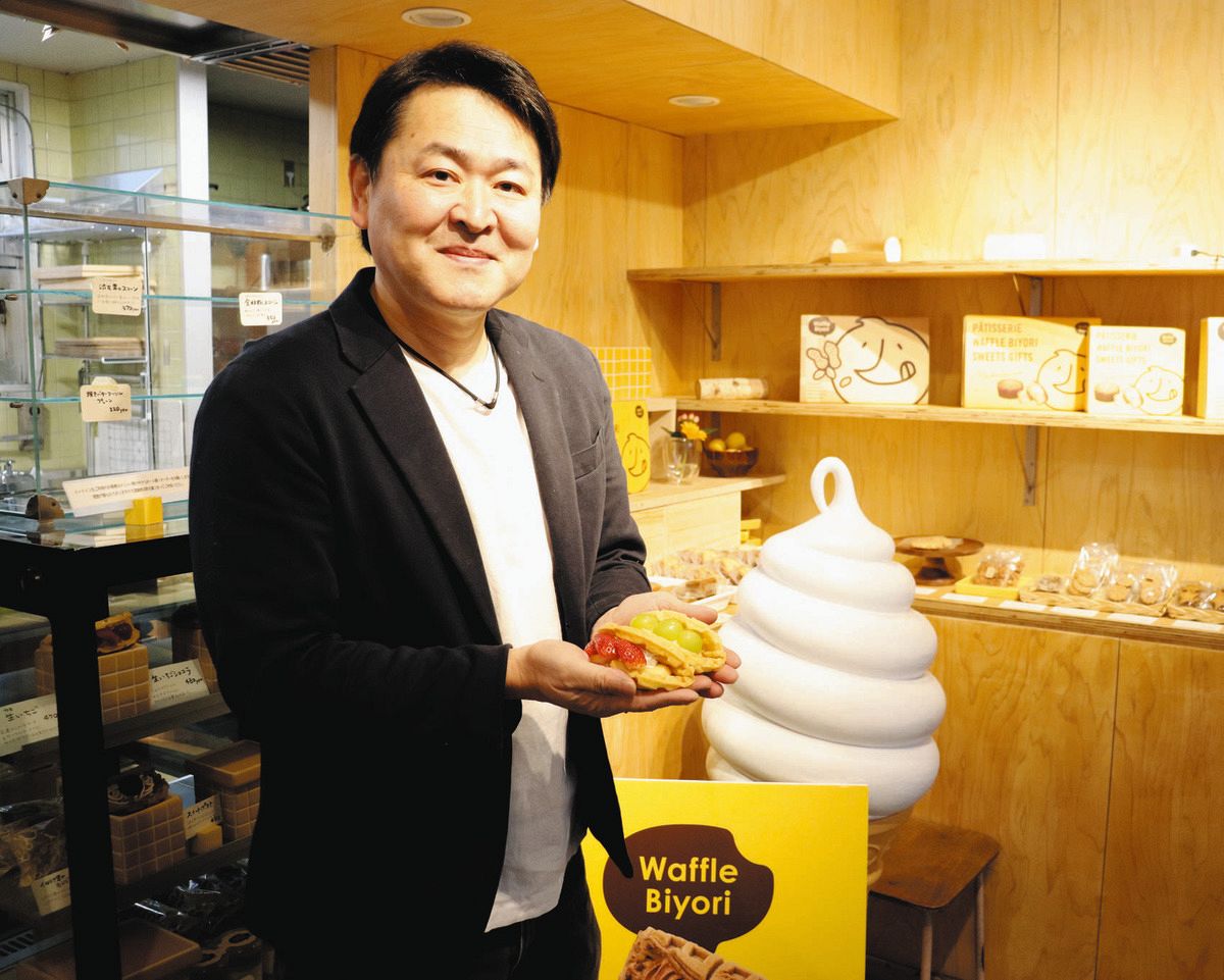 食べ物は価格か品質のどちらを重視するか。物価高の昨今、悩みを持つ消費者に安心・安全で、価格的にも「バランスのいいものを食べてほしい」と、石橋和規(かずのり)社長(49)が販売するのは手焼きワッフルだ。フルーツ入りのふわりとしたワッフルは1個400〜500円台で販売。出身地の千葉県産を中心に各地のイチゴ、メロンなど「おいしいフルーツを生かすための商品」に作り上げた。