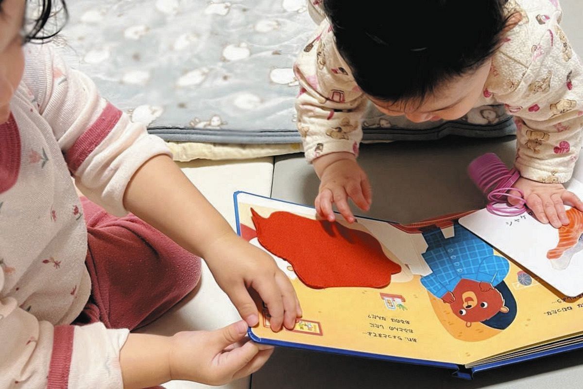 プレゼントされた本を楽しむ幼児(清輔夏輝さん提供)