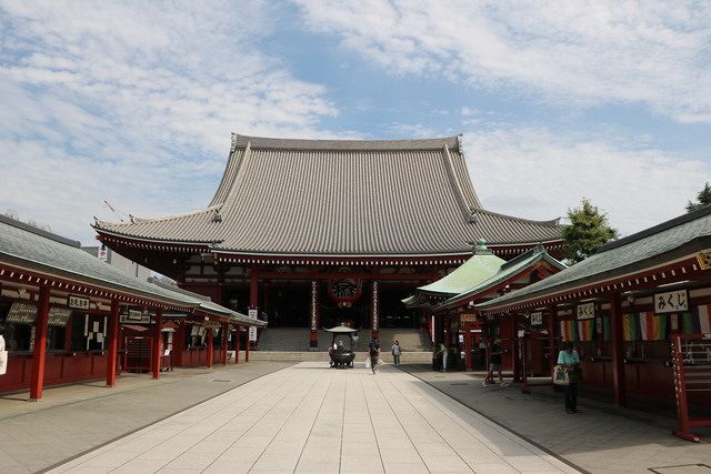 約1400年の歴史を持つ観音霊場。都内最古の寺院として知られ、年間を通して国内外からの参拝者で賑わいます。玄関口には浅草のシンボルでもある雷門が。仲見世を進むと見えてくる朱塗りの楼門は、仁王像と大わらじで有名な宝蔵門です。その先の本堂で祀られているのはご本尊である聖観世音菩薩。そびえ立つ五重塔も必見です。12月には歳末の風物詩「羽子板市」が境内を華やかに彩ります。