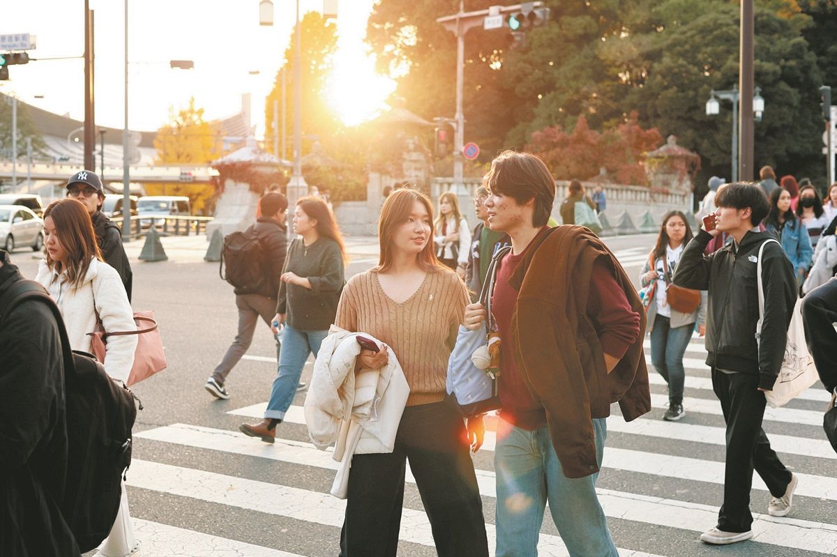 暖かい陽気の中、歩く人たち=東京都渋谷区で(平野皓士朗撮影)
