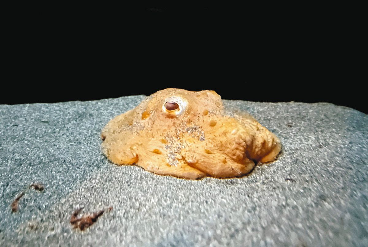 水槽内の底でじっとしているメンダコ
