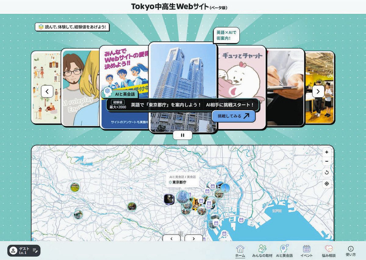 東京都は、中高生向けのウェブサイト「Tokyo中高生Webサイト(ベータ版)」を公開した。人工知能(AI)を使った英会話学習コンテンツ...