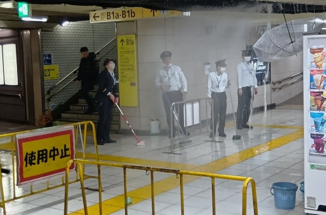 14日午後6時ごろ、千代田区の東京メトロ丸ノ内線霞ケ関駅の日比谷公園方面の改札付近で、天井から大量の漏水があった。給水管が破損した可能...